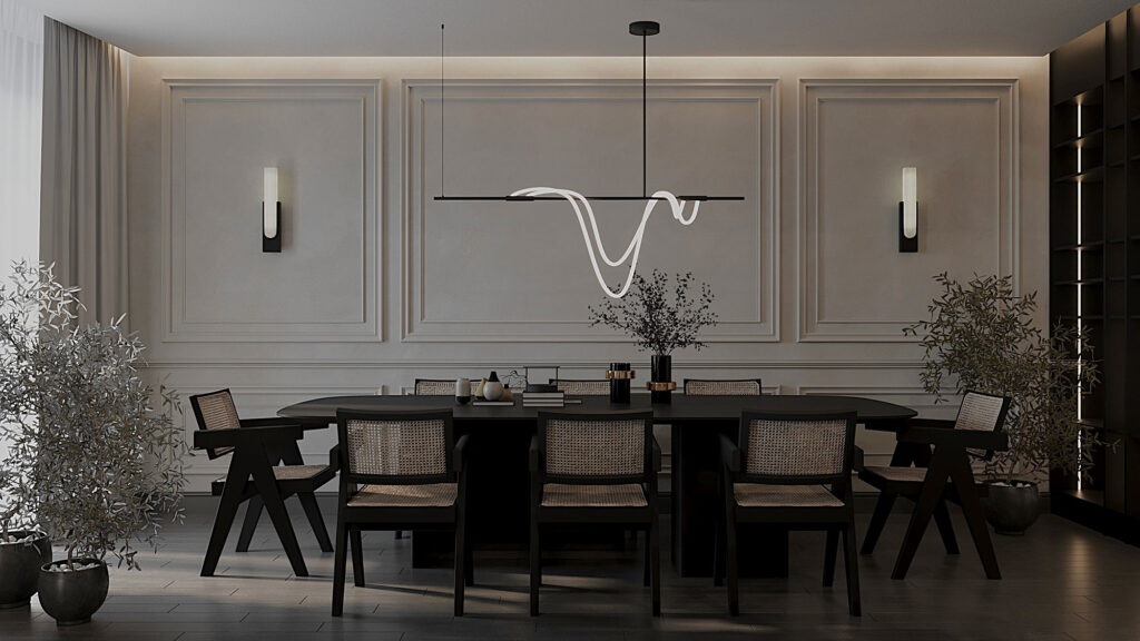 After your approval of the project design, we will work on the technical drawings and develop the detailed plans. All of the interior architectural plans and technical drawings, including elevations, electrical plans, detailed kitchen design, bathrooms, custom pieces, built-in joinery, plumbing, skirting boards, curtain details, light switches, and all final finishes will be presented.